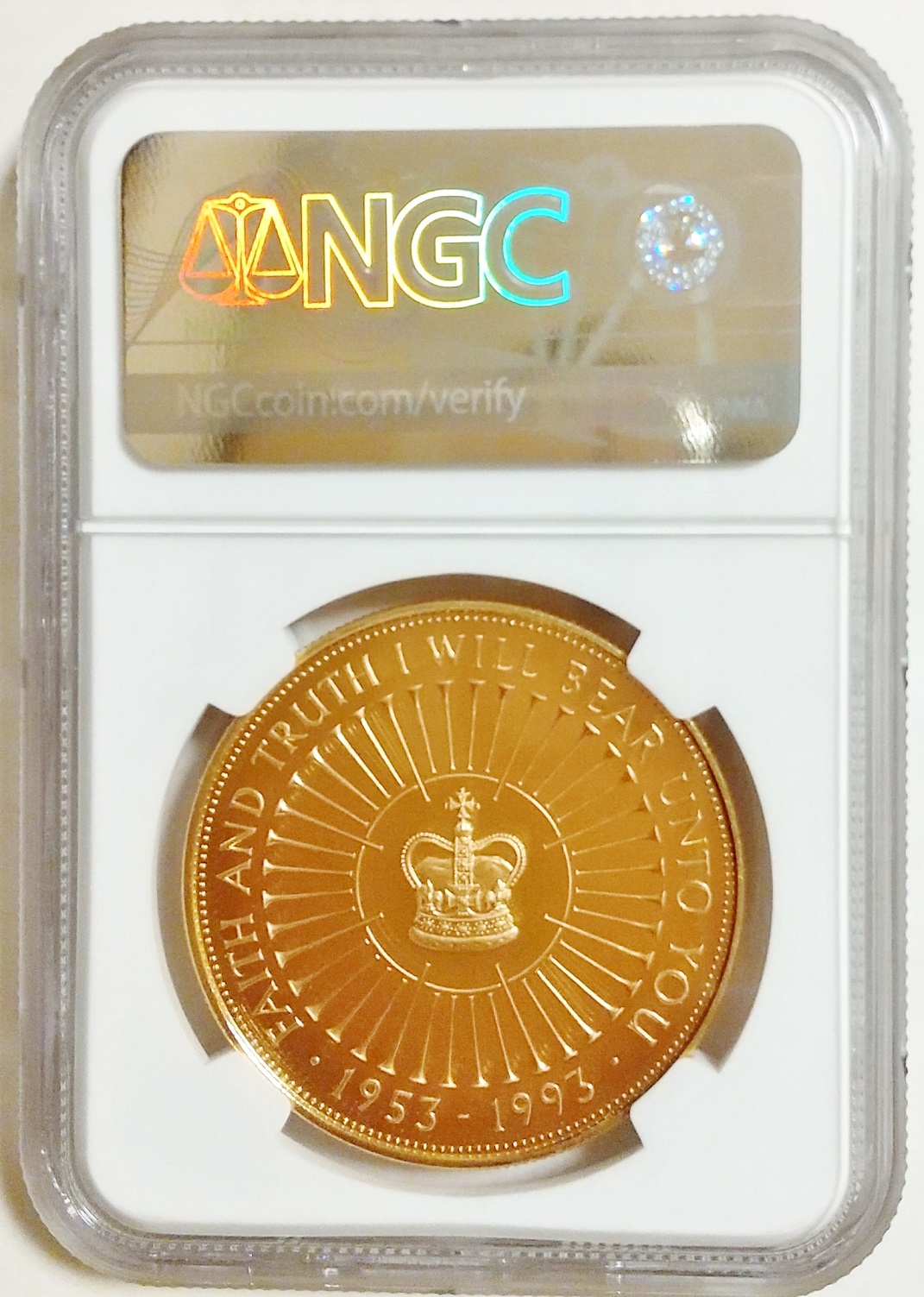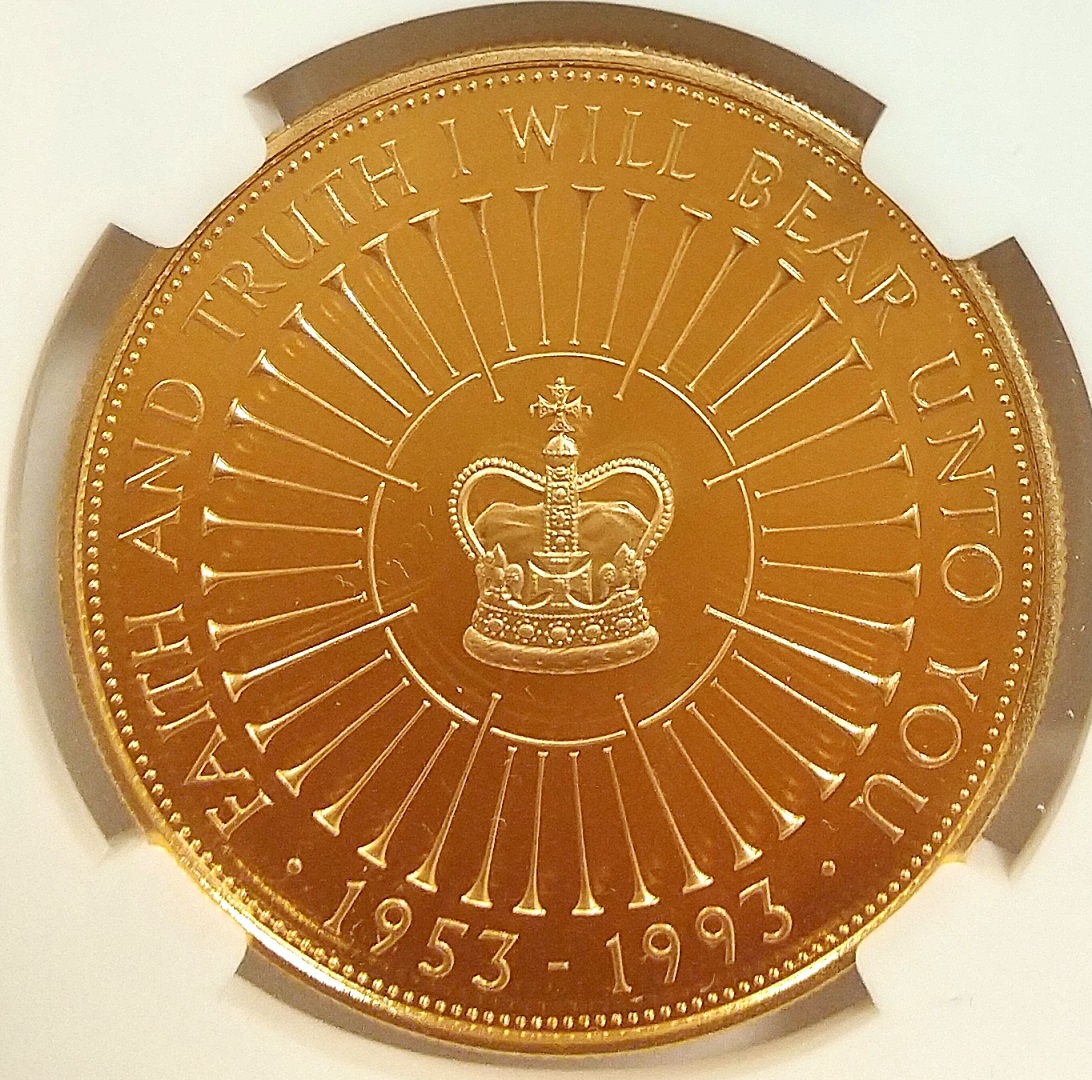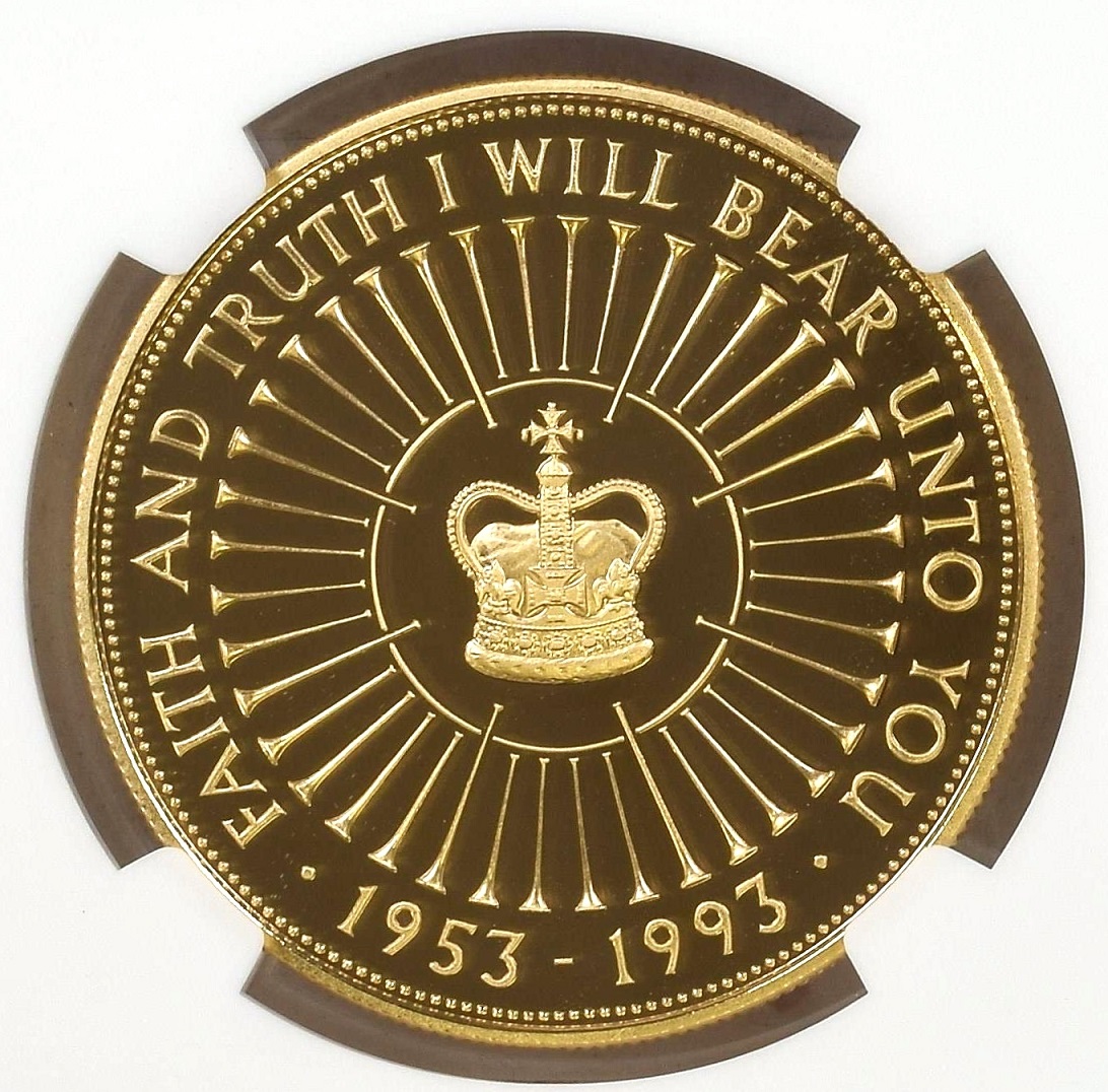 1993年 英国 イギリス 女王 エリザベス2世 戴冠40周年 5ポンド プルーフ 金貨 NGC PF70 ULTRA CAMEO ヤングヤング