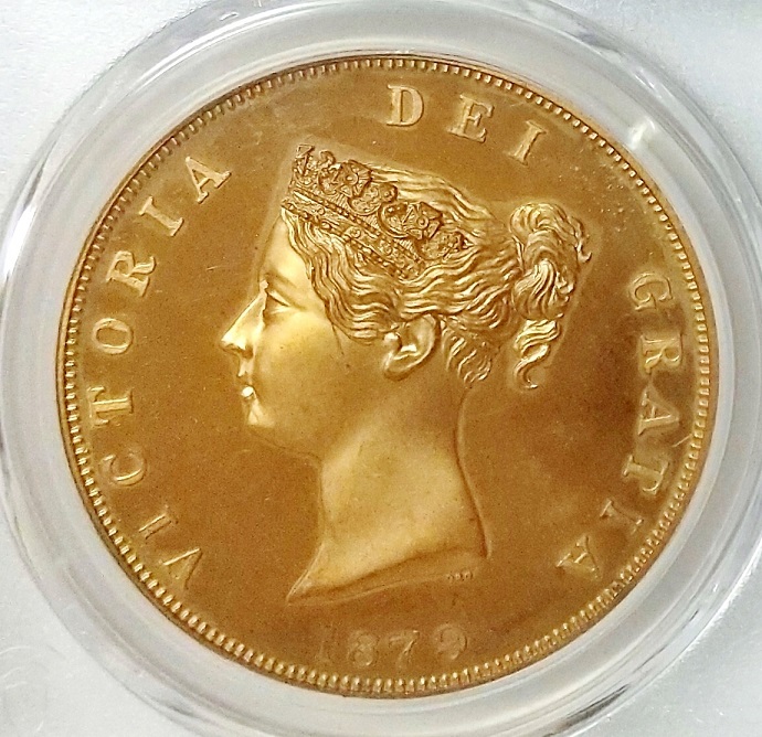 【1879年 イギリス ビクトリア セントジョージ ドラゴン クラウン プルーフ銅貨】