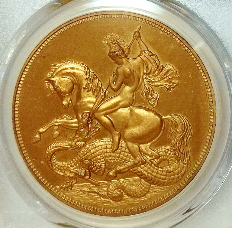表面は美しいヤングヴィクトリア、裏面は幻想的なセントジョージとドラゴン。