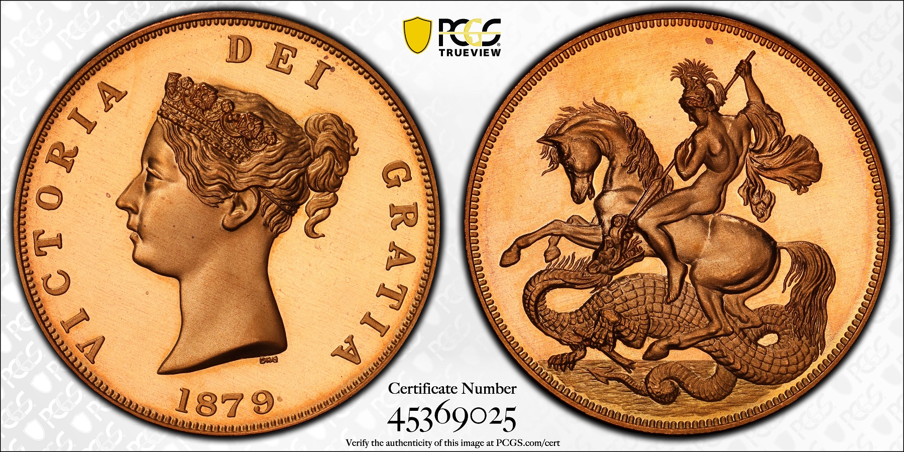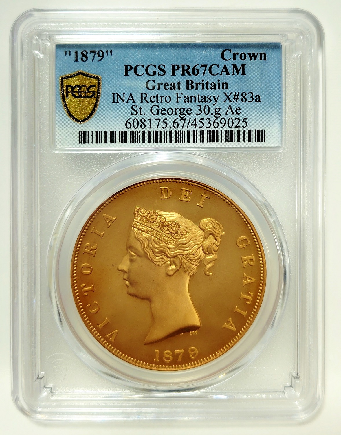 TOP POP ”1879” イギリス ヴィクトリア女王 ビクトリア セントジョージ ドラゴン クラウン プルーフ 黄銅貨 PCGS PR67 CAM レトロファンタジー