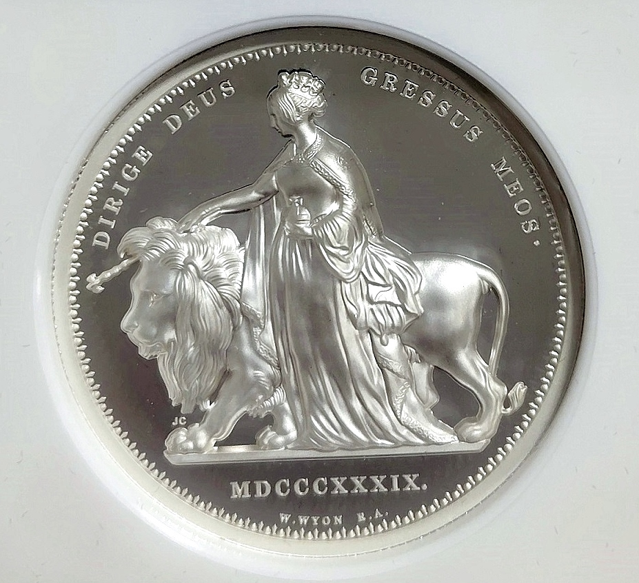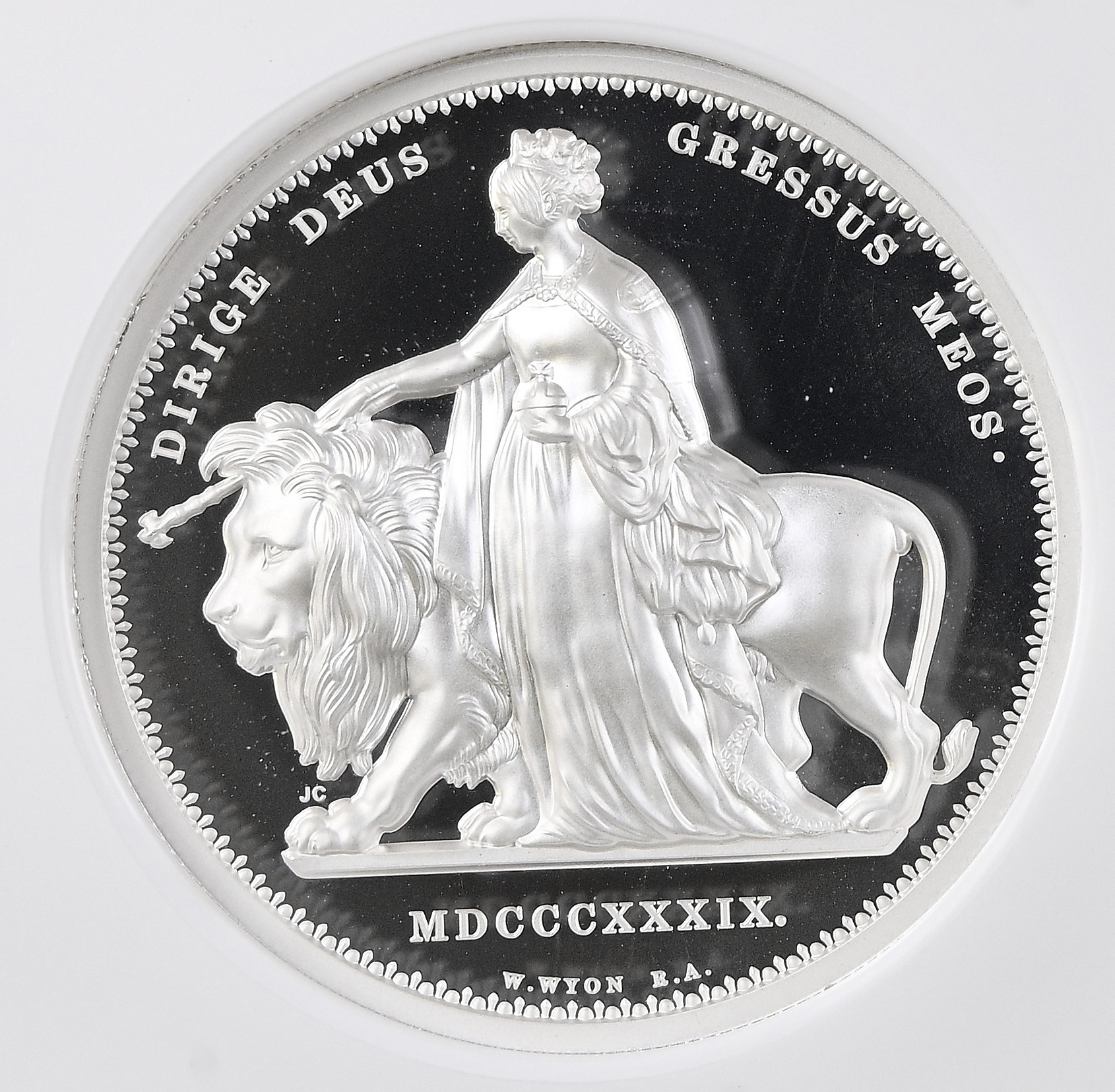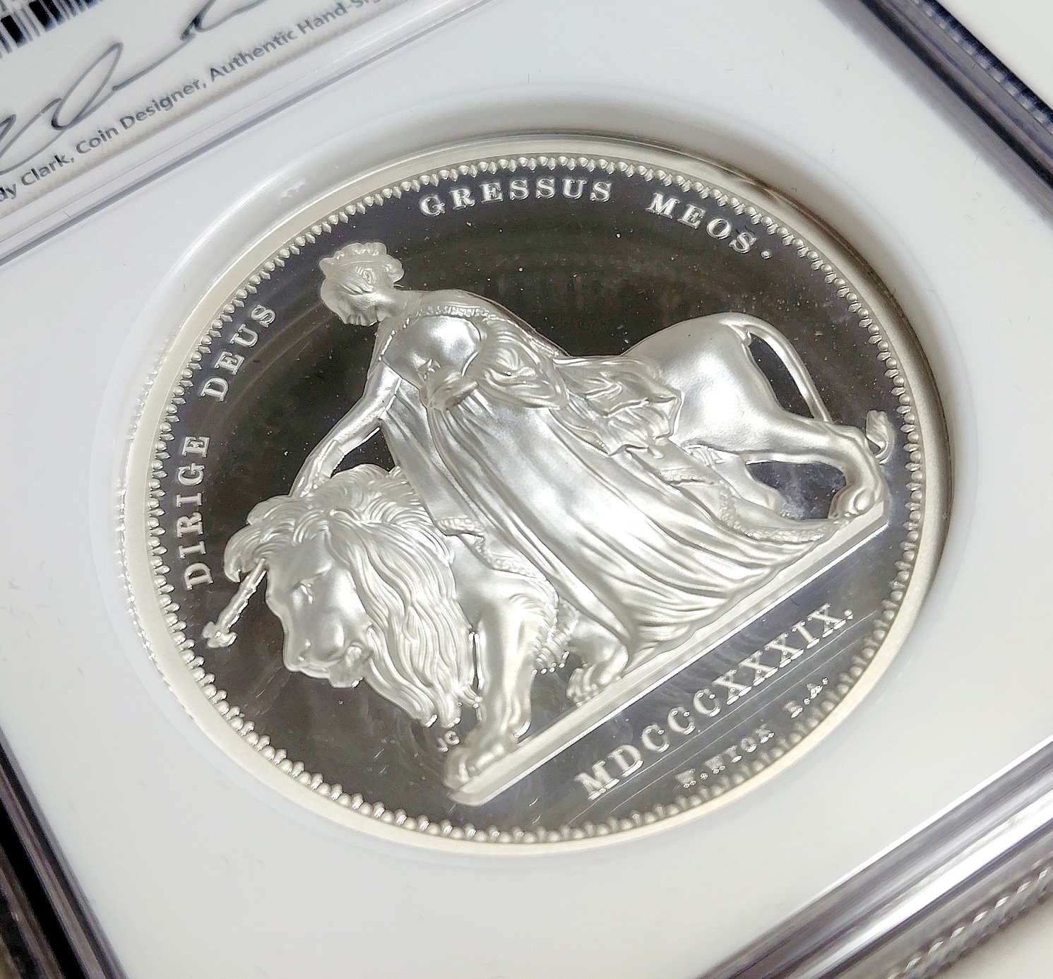 歴史上最も美しいコインと言われている ウィリアム・ワイオンのウナとライオンのリストライクです。